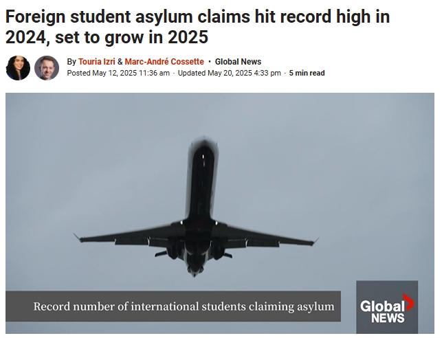 尽管加拿大削减了学签的发放数量,但申请难民庇护数仍在不断上升。今年前三个月,就有5500份留学生提交的份庇护申请,比去年同期增长了22%。去年寻求庇护的留学生人数几乎是2023年的两倍,是2019年的六倍。