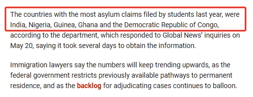据加拿大移民、难民及公民部称,去年学生申请庇护最多的国家是印度,其他还有尼日利亚、几内亚、加纳和刚果民主共和国。