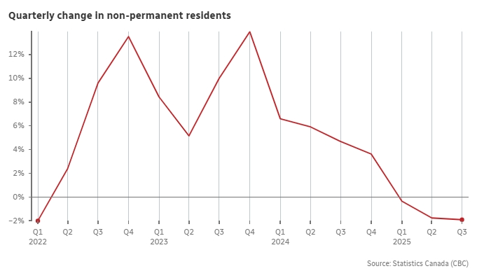这一下降与联邦政府在2024年实施的移民政策收紧直接相关。政策包括:减少临时外籍劳工的配额、限制雇主雇用低薪外劳的条件,以及大幅削减学习签证的发放数量。