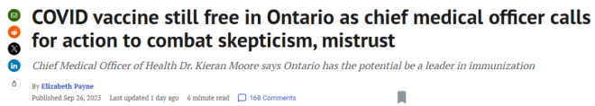 就在阿尔伯塔省和魁北克省停止为普通民众提供免费新冠疫苗,只针对高风险人群时,甚至美国的新冠疫苗接种也变得越来越受限,安大略省却选择走向了另一个方向。