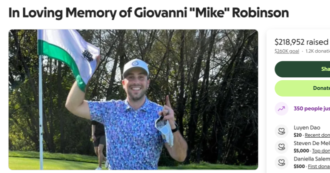 Robinson 的表妹 Daniella Apostolakos 已在 GoFundMe 上发起募捐活动,帮助 Robinson 一家度过这段极其悲痛和艰难的时期。