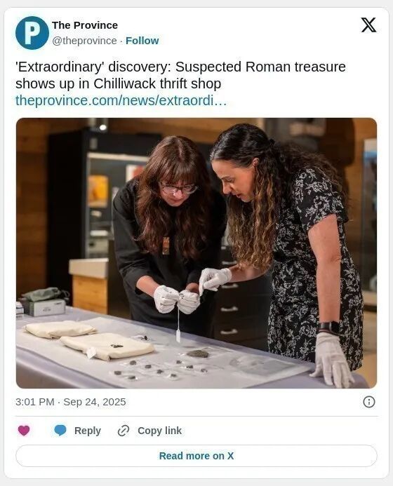 Thrifty Boutique 所在的奇利瓦克市,其二手店的资助货源大多来自该地疗养院(Chilliwack Hospice Society)。该组织执行董事 Sue Knott 对这一捐赠表示:“能够继续延续这些文物的故事,我们深感荣幸。这件事美好地提醒我们——每一份捐赠都可能承载意义深远的历史和未知潜力”。