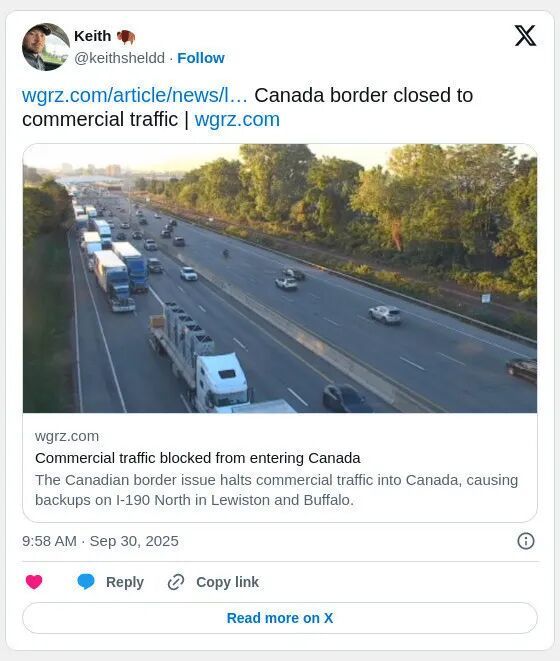 加拿大出啥事?多个边境口岸卡车大排长龙