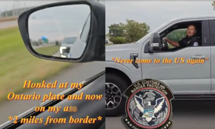 视频配文写道:“看到我的安省车牌后按了喇叭,现在在离边境两英里的地方紧追我不放。”