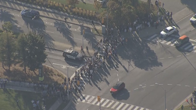 多伦多公车局(TTC)也发布临时通告,134 Progress线路当天绕过学院巴士总站,以避开人群聚集。
