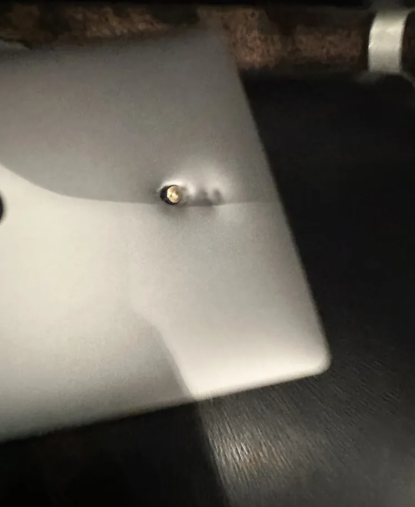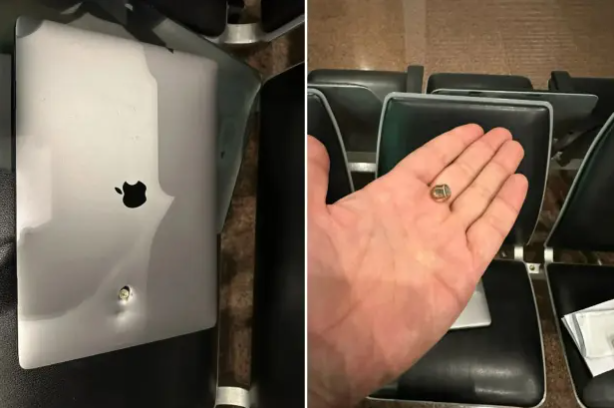 他的MacBook外壳被打穿,弹头卡在硬盘位置——