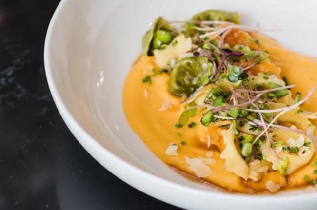 不妨先品尝 Root 98 的帕玛森枫糖奶油南瓜意大利饺子,最后再来一份温哥华机场环球费尔蒙酒店的美味栗子慕斯。
