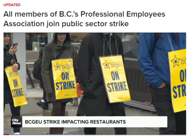 总结来说,卑诗省的这场公共部门罢工正从政府办公室蔓延到餐厅、酒吧甚至整个零售业。