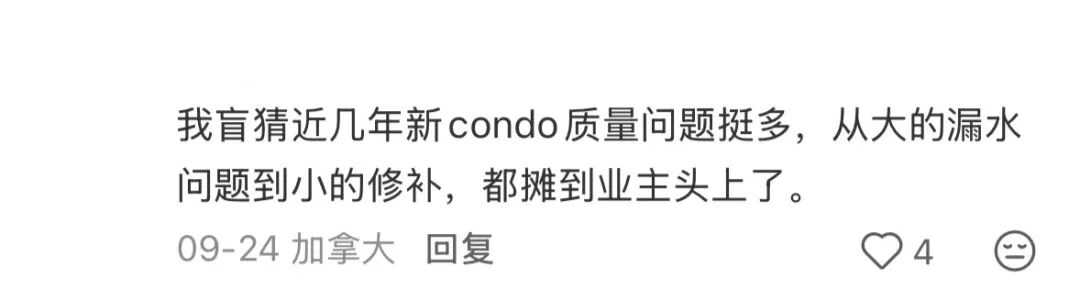 “我盲猜近几年新 condo 质量问题挺多,从大的漏水问题到小的修补,都摊到业主头上了。” 网友这猜测,也不是没道理。