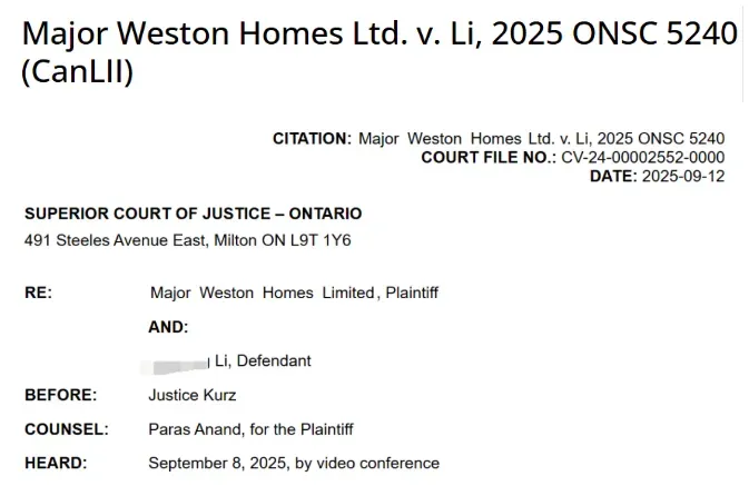 另加法定利息,以及9.000诉讼及动议费用,合计超过16万加元。如果再算上那笔已被没收的19.5万定金,李女士的损失近36万。