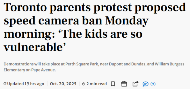 这一担忧也得到权威研究支持。多伦多SickKids医院与多伦多都会大学的研究显示,限速摄像头可使多伦多车速降低45%。