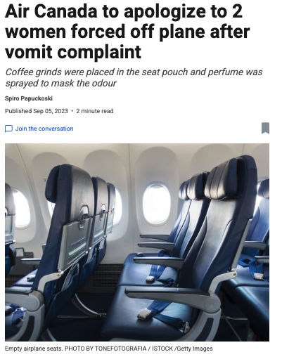事实上,这已经不是加拿大航空第一次因为“呕吐物”问题登上头条了。