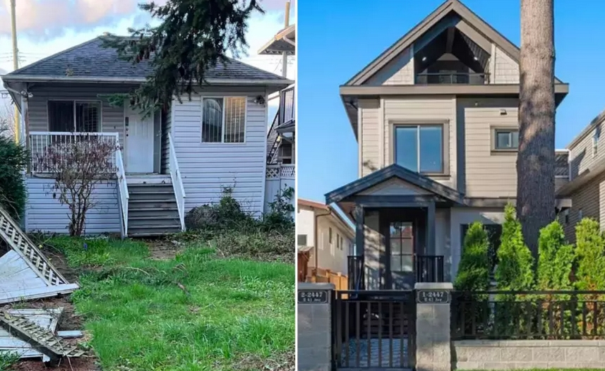 温哥华一处曾经名噪一时的“碍眼”破旧房屋,如今变身两套靓丽的双拼屋(Duplex),价格翻了一番。