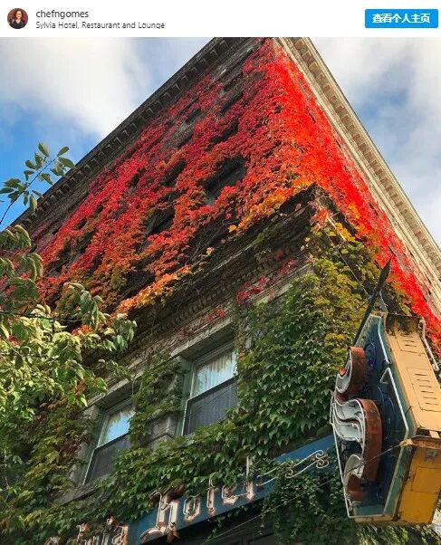 每到秋季,温哥华这个红枫覆盖的酒店就成了网红必去的打卡地。