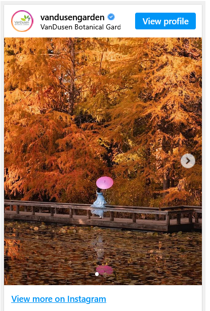 VanDusen 植物园在秋季美不胜收,上千种树木呈现出绚丽缤纷的秋色,是温哥华赏秋的绝佳之处。