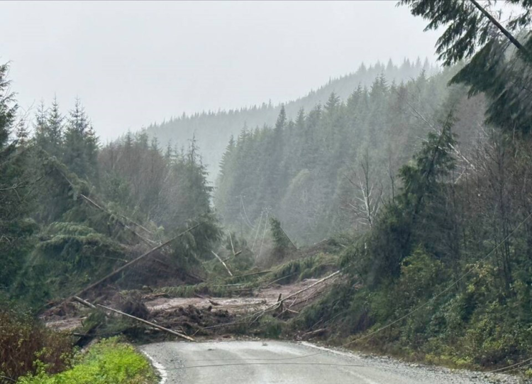 警方于周五表示,在温哥华岛北部哈迪港(Port Hardy)附近,因山洪暴发导致车辆被洪水和碎石困住,导致双向道路堵塞(上图),有8人需要救援。