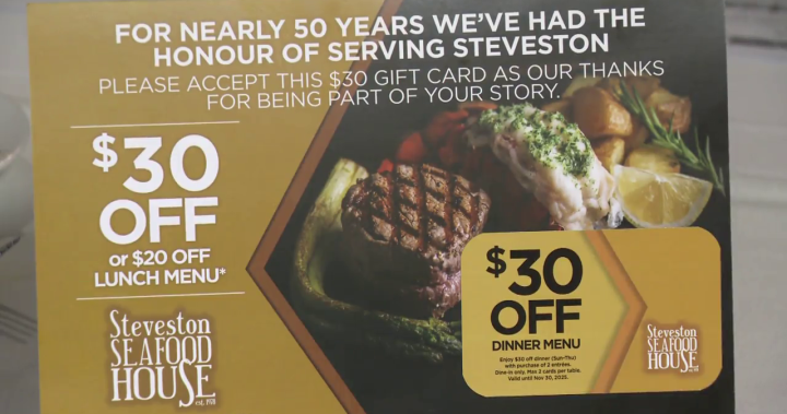 据Global News报道,列治文的“史蒂夫斯顿海鲜餐厅”(Steveston Seafood House)老板Shane Dagan表示,他们希望透过寄送邮件举办促销活动,与社区建立联系。