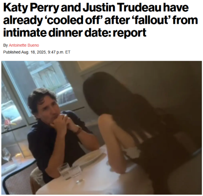 紧接着,特鲁多低调现身佩里的蒙特利尔演唱会现场,台下深情注视。