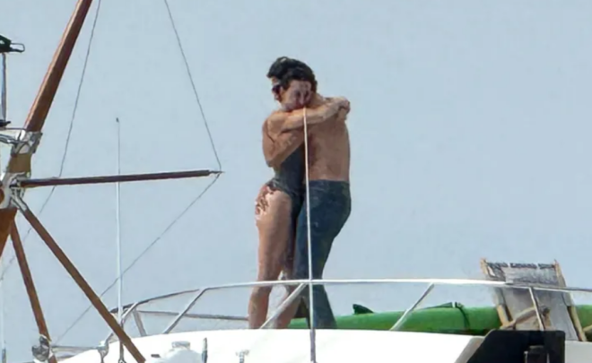 本月早些时候,两人被拍到在圣巴巴拉海岸的豪华游艇上亲密依偎、深情拥吻。