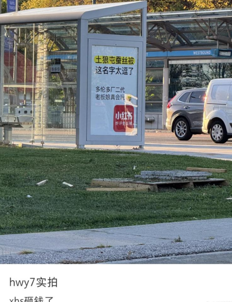 前几天,有华人网友在多伦多的公交站看到了一则纯中文的广告,主角是大家非常熟悉的社交媒体“小X书”。