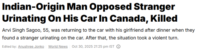 据悉,Sagoo是一位印度裔加拿大人——他善良、勤劳,是两个孩子的好爸爸,也是朋友眼中“总在为别人着想”的那个人。可就在几天前的一个深夜,他却因为一句再普通不过的质问,永远失去了自己的生命。