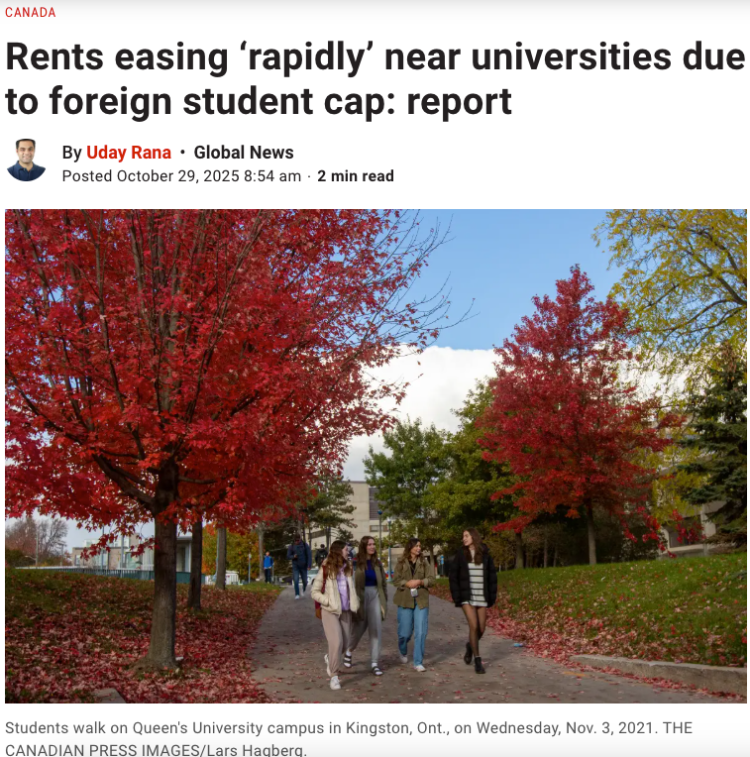 根据本周二(10月29日)发布的一份最新租房市场报告称,由于加拿大联邦政府限制国际留学生入学,这导致学生租房市场“迅速降温”。