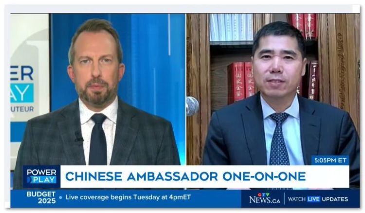 10月31日,中国驻加拿大大使王镝应约接受“加拿大电视台”(CTV)政论节目“权力游戏”专访,介绍两国领导人在韩国出席亚太经合组织领导人非正式会议期间双边会见情况。