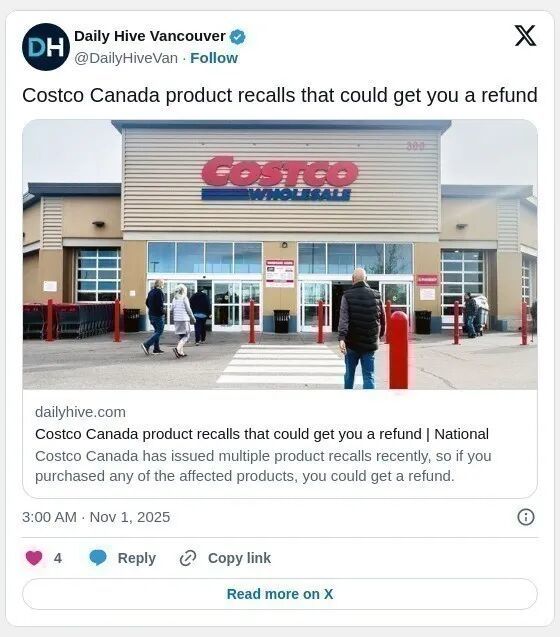 以下是媒体dailyhive为大家整理加拿大Costco近期的产品召回。