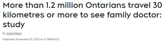 这项刊登在《加拿大医学会期刊》上的研究,追踪了安省居民就诊的距离及相关健康结果。研究对象包括截至2023年3月31日,居住在城市和郊区、共近1000万名登记有家庭医生的居民。