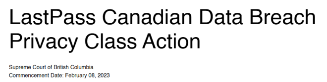 2023年2月,加拿大BC省法院正式受理针对LastPass的集体诉讼。