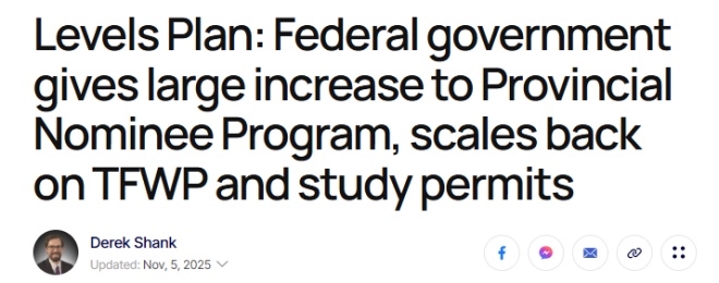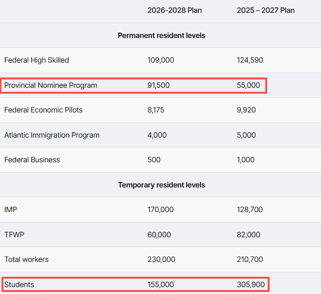 但在去年的移民计划中,PNP是“最大输家”:2025年的落地目标从原本的12万人大幅削减到仅5.5万人。