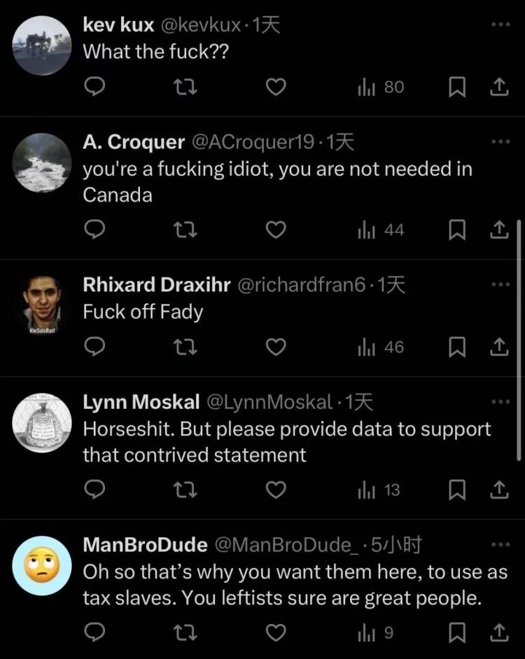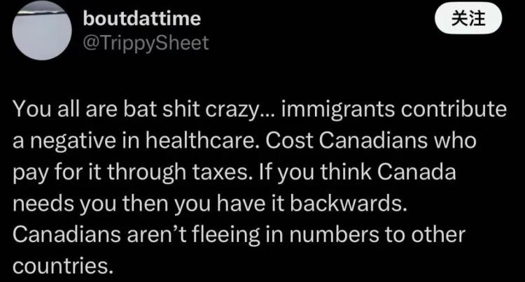 有人直接把气撒到加拿大移民群体上:“移民来自极其贫困的国家,他们需要我们远比我们需要他们100倍。”