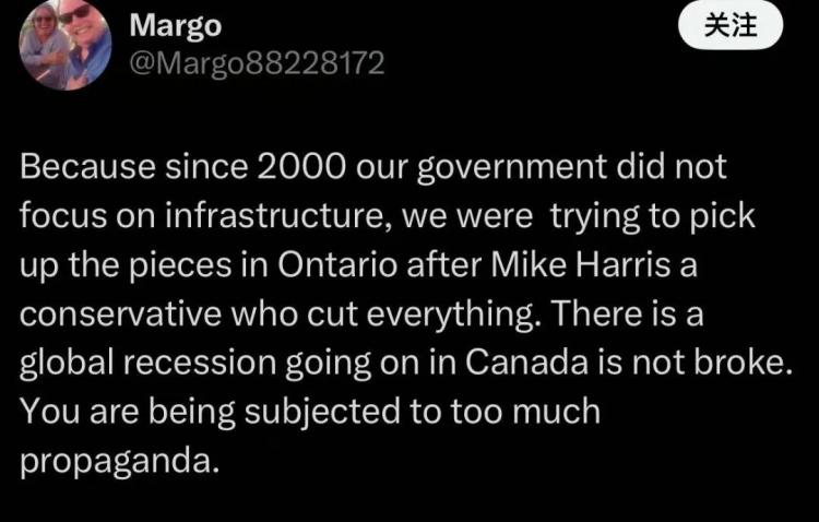 另一位网友回应:“自2000年以来,政府忽视基础设施投资。现在我们只是在为过去的削减埋单。加拿大没有破产,只是系统老化。”