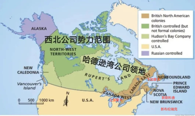英国为了扶持进一步扶持加拿大对抗美国,希望把哈德逊湾公司控制的鲁伯特、西北地区划给加拿大。