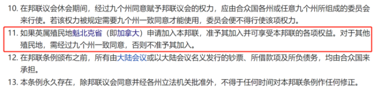 ▲《邦联条例》第11条,美国给加拿大预留一个位置