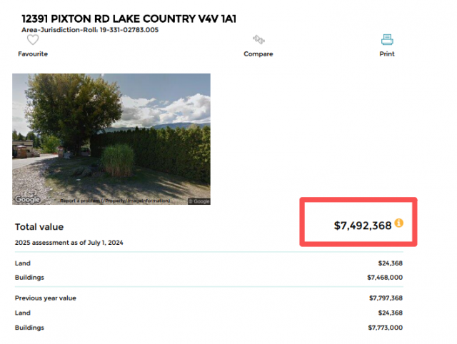 按照BC Assessment最新的统计数据,截止到2024年7月1日,该物业由官方认定的估值仅为$749万元,差不多是成交价的四分之一。