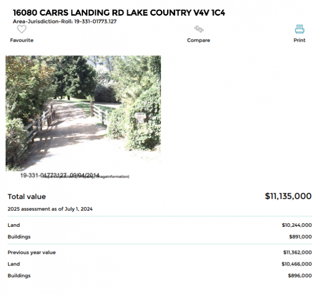 根据BC Assessment 2025年度数据,这套物业的官方估值为$1113.5万,其中: