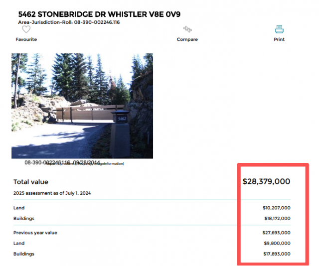 根据BC Assessment官方估值,这套房产2025年的总价为$2837.9万,其中土地估值为$1020.7万、建筑估值为$1817.2万,与实际成交价几乎持平。