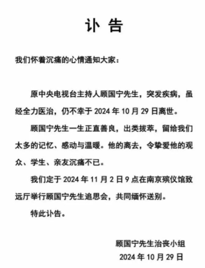 年仅46岁的前央视主持顾国宁为人们敲响警钟
