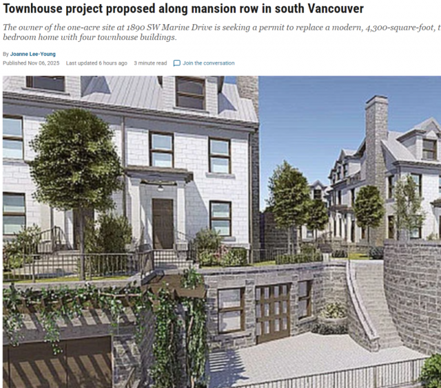 近日,温哥华市政府近期提议,允许在1890 SW Marine Drive的地块上建设城市屋。