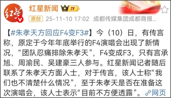 2025年11月10日,台媒一条“F4变F3”的消息炸穿娱乐圈。相信音乐深夜发声明证实:朱孝天正式退出团体。