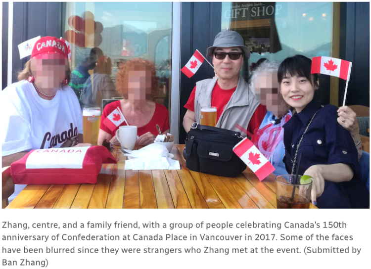 图:2017年,张显示(中)和一位家庭朋友在温哥华庆祝加拿大成立150周年。(张先生供图)