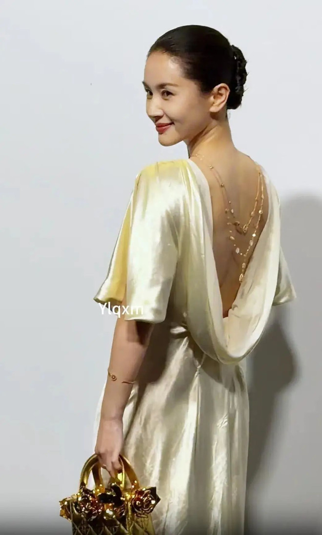 王子文在品牌方的安排下也拿了一只金色的包在身上展示,但这条米白色长裙有点像居家服,看着太普通了,甚至有点拖后腿。
