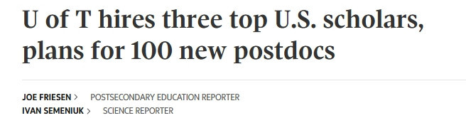 与此同时,多伦多大学还宣布了一项2.400万加元的全球引才计划,将在未来两年内招聘100名博士后研究员,每人将获得约10万加元的薪酬与科研经费支持。