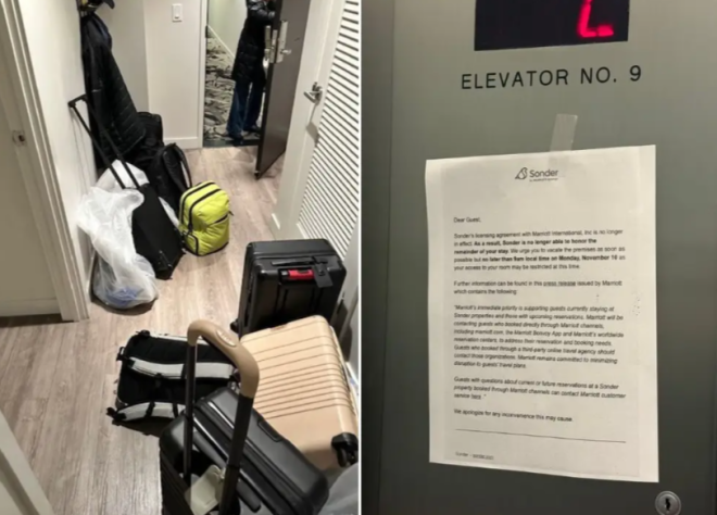 周日(11月9日),他收到了两封来自Sonder和万豪的邮件,通知他必须在第二天早上9点前离开房间。留给他反应的时间只有短短的18个小时。