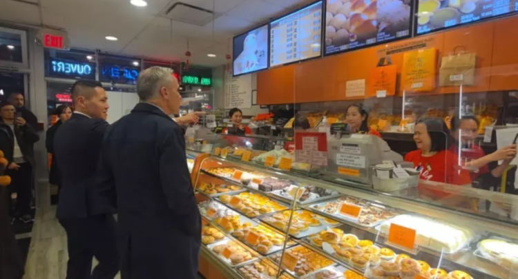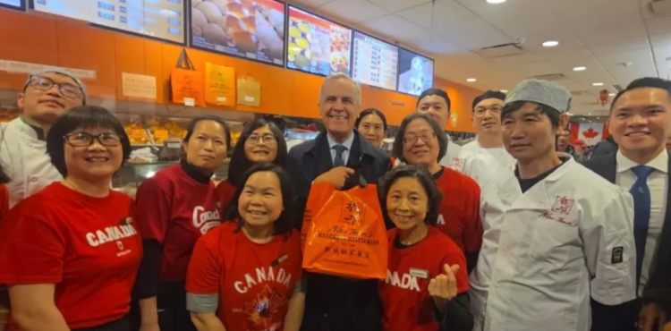 总理卡尼(Mark Carney)晚间造访温哥华华埠的新城饼家,店内员工极度开心能获得总理青睐,店内顾客也感到意外惊喜。