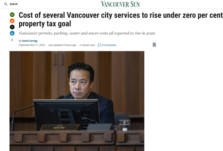 明年温哥华要市选,今年温哥华在做预算时,市长沈观健就提出来2026年不涨地税,零增长就是零增长。