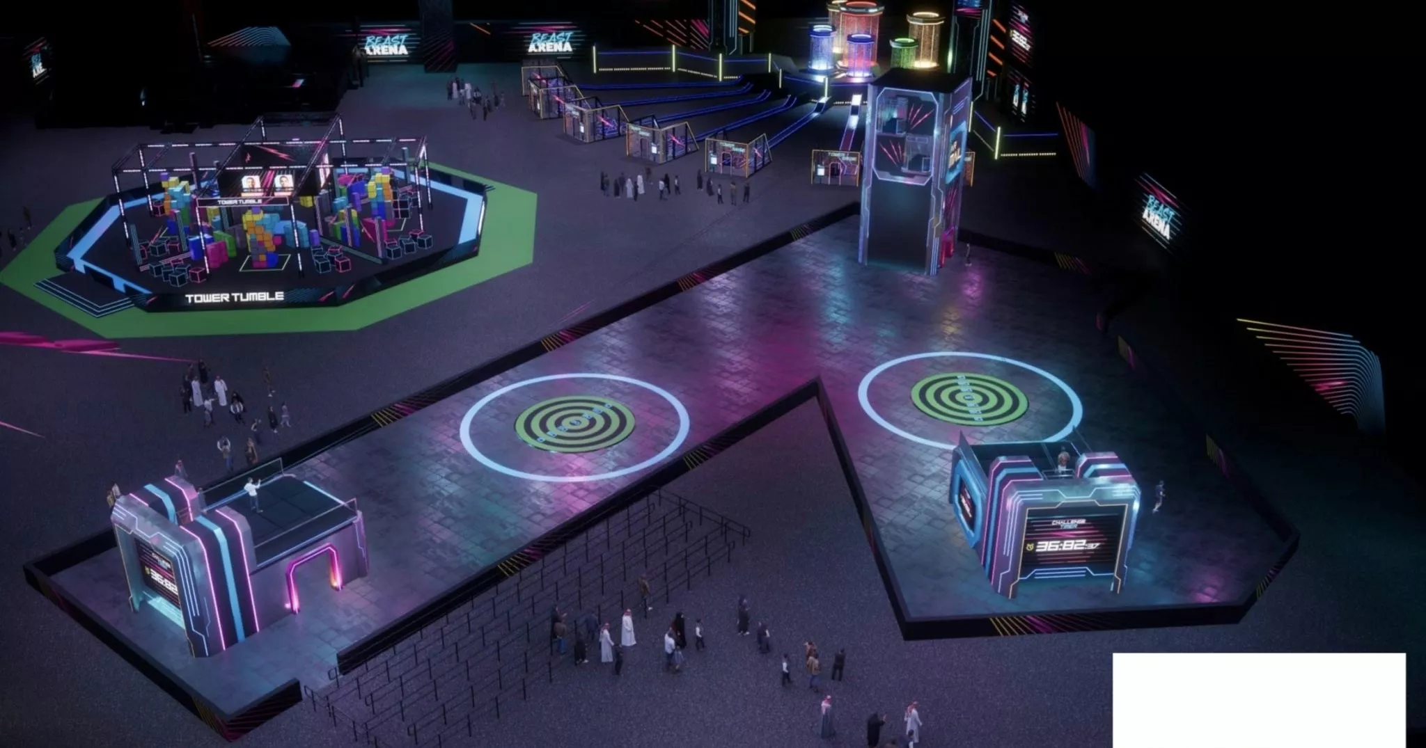 攻塔挑战游客可以使用巨型弹射器发射球,坠落区则是设有六人站位的活动门板,最后未按下按钮的参与者将坠入下方,空中邮差则让游客沿滑索行进,投掷重物包裹击中目标,巧妙融入MrBeast标志性的游戏化元素。