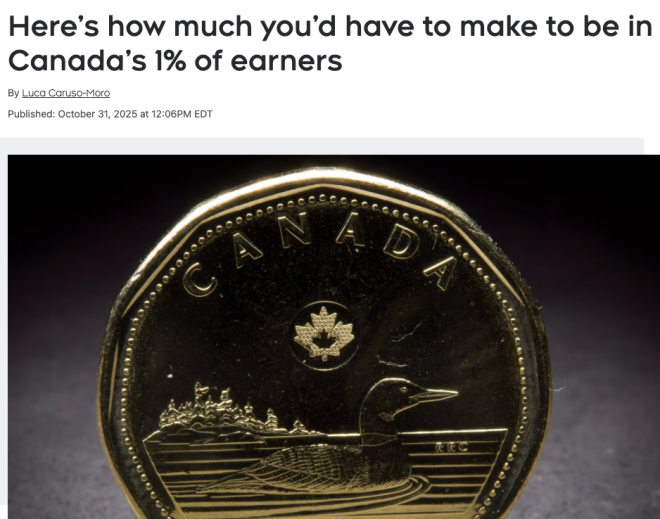 按照加拿大统计局最新发布的《高收入加拿大人》报告,2023那一年里,加拿大那最顶尖的1%纳税人,平均年收入有$60.6万元,经过通胀修正后,全国纳税人的平均收入不过$5.99万元,表现出明显的反差。
