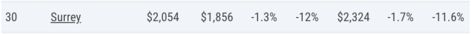 从租金水平和降幅来看,素里仍是大温性价比最高的选择之一。